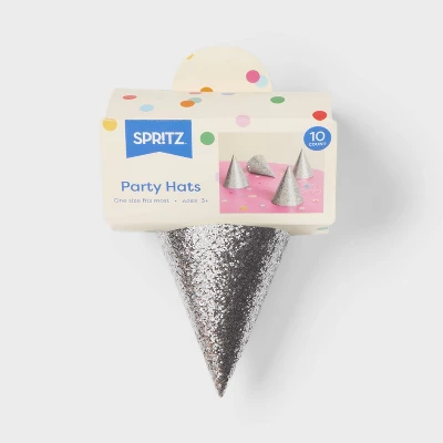 Make your next party a memorable one with the 10ct 5″ Glittered Party Hats Silver from Spritz™. These party hats are designed with silver glitter and feature an elastic string that keeps them securely in place without any hassle. Ready to use straight out of the package, the 10ct 5″ glittered party hats silver from Spritz™ save you time and effort so you can focus on enjoying the festivities.