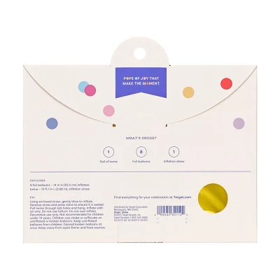 Whether you’re celebrating a high school graduation or an anniversary, do it in fun style with the ‘Congrats’ Script Foil Balloon Set from Spritz™. This gold mylar balloon set includes eight balloons that spell out the word ‘Congrats,’ helping you set the scene for wedding receptions, grad parties, retirement celebrations and more. The balloons come with an included string and inflating straw for easy use – simply pair with coordinating ribbons, banners and tableware for a complete party setting you’re sure to love.