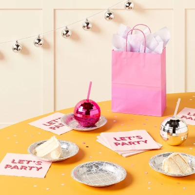 Add some sparkle to your drinkware with the Disco Ball Shaped Cup Silver from Spritz™. Made from durable BPA-free plastic material, this cup is perfect for cold beverages. It comes with a convenient straw, making it easy to sip your favorite drinks. With a generous 14 fl oz capacity, it’s ideal for parties, picnics, or everyday use. The vibrant silver color and disco ball design will surely make your drink stand out and add a fun vibe to any occasion.