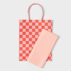 12.99″x7.71″x0.79″ Valentine’s Day Small Gift Bag With Tissue Chessboard Pattern – Spritz™